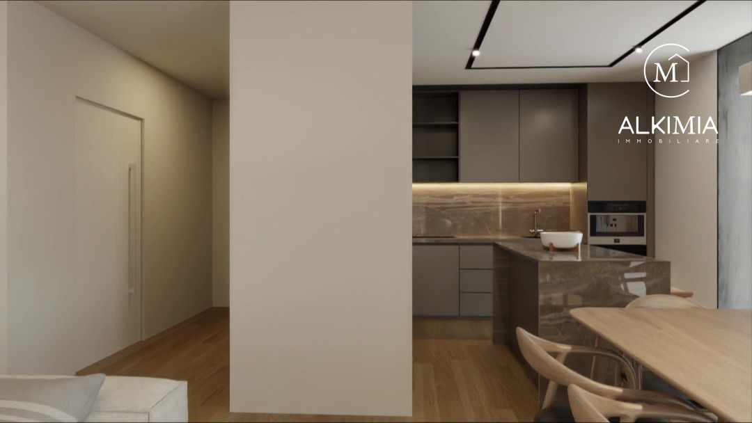 L’ingresso conduce ad un raffinato soggiorno open space con cucina, eventualmente divisibile, che si apre su una splendida terrazza abitabile di 35 mq: uno spazio ideale per pranzi, cene o momenti di relax all’aperto in totale privacy.