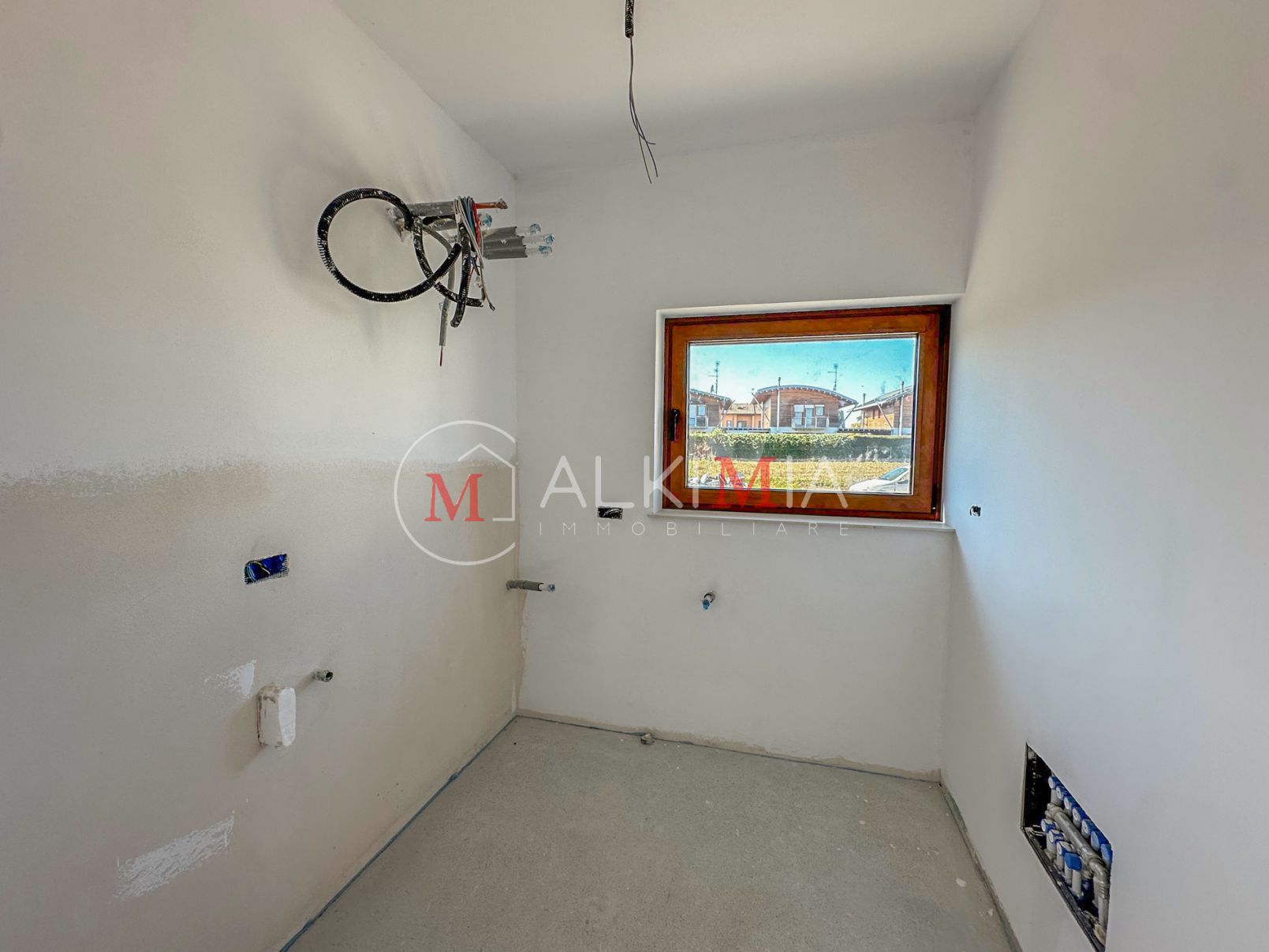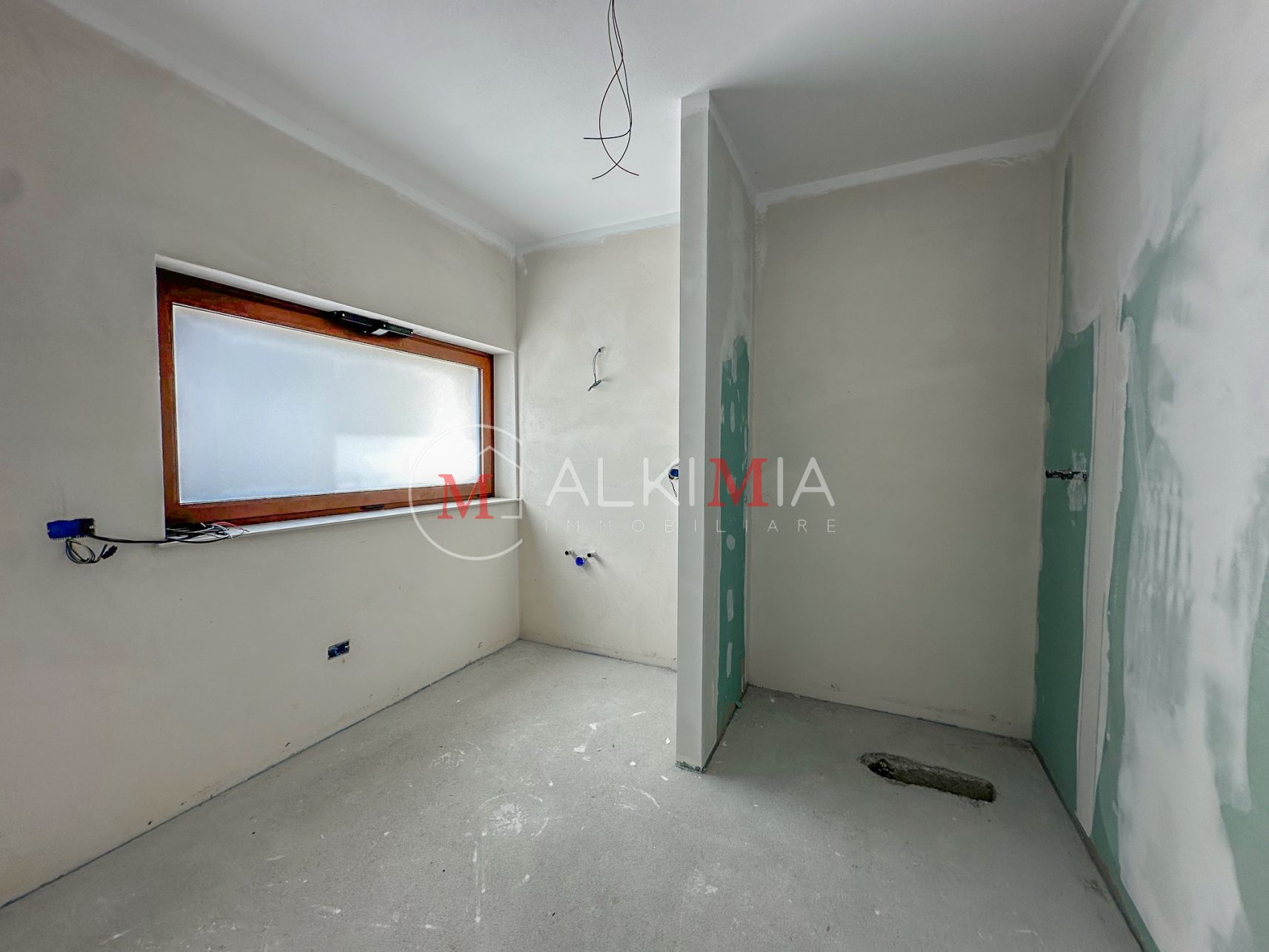 L’immobile si compone al piano terra da ingresso su ampio e luminosissimo soggiorno più cucina openspace di 50 mq, disimpegno che conduce a bagno finestrato ed un vano tecnico ad uso lavanderia e da qui si accede ad un’autorimessa doppia.